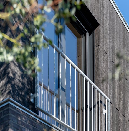 De sobere detaillering en strakke verschijningsvorm van het bestaande woonhuis is overgenomen waardoor samenhang ontstaat.