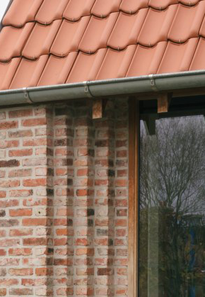 Het uitgangspunt is dat het bestaande woonhuis duidelijk afleesbaar blijft. Dit is ook duidelijk in het materiaalgebruik. Zo is het metselwerk overgenomen, maar is deze in de aanbouw iets lichter en gemêleerder van kleur. Dit geldt tevens voor de plintafwerking. Door qua materiaalgebruik licht af te wijken van het bestaande woonhuis blijft deze in stand en wordt het verder verzelfstandigt. De vrijgekomen dakpannen van het bestaande huis worden hergebruikt in het bijgebouw waardoor een rustige eenheid ontstaat.