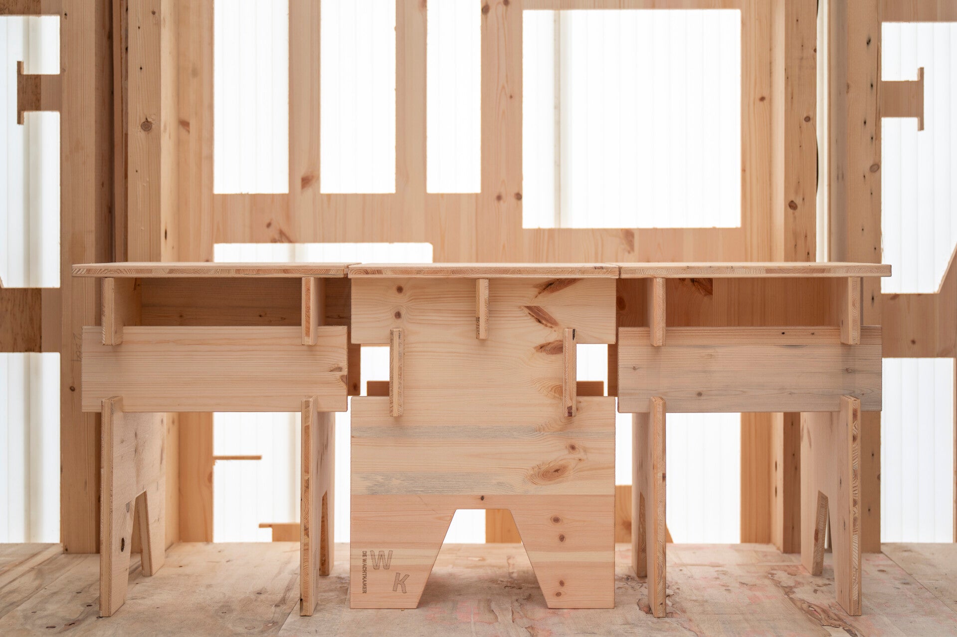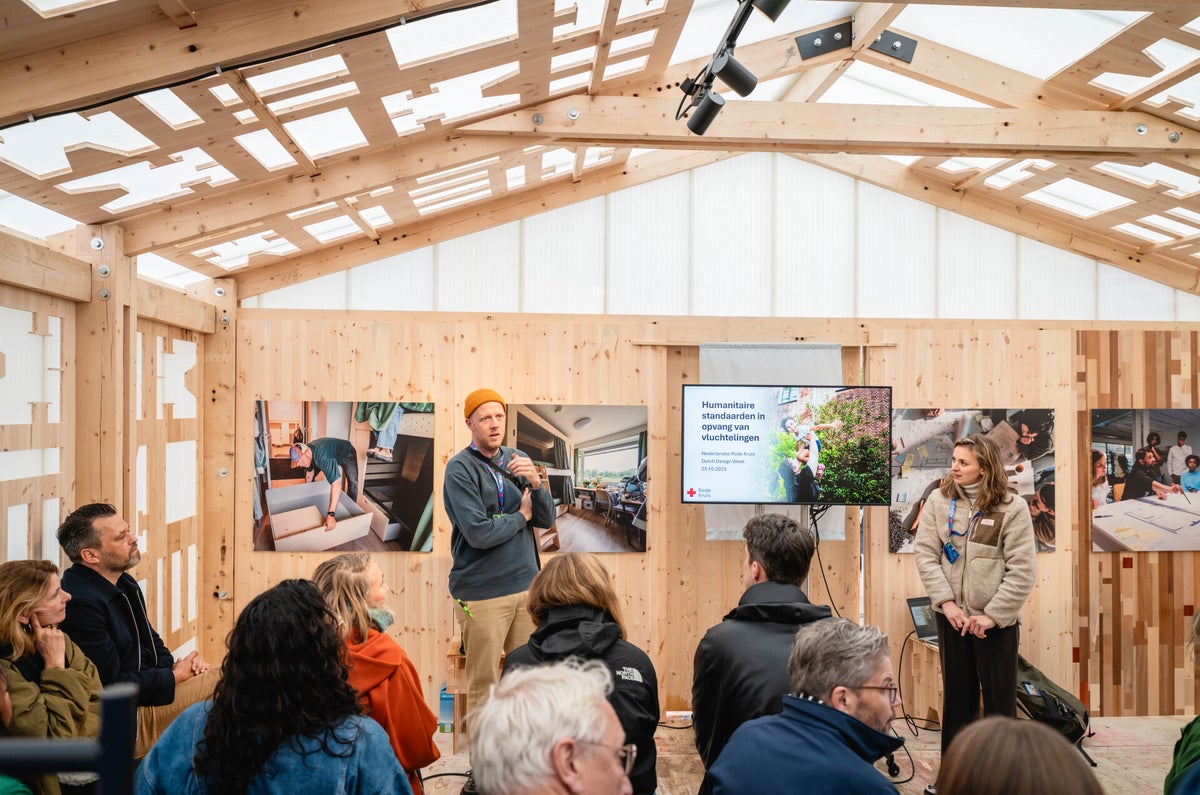 Het bouwwerk heeft de archetypische vorm van een noodopvangtent met een eenvoudige zadeldakconstructie. Het is vervaardigd uit circulair afvalhout van het Nederlandse bedrijf Herso Circulaire Houtbewerkers. Ook de gevelbekleding en diverse andere onderdelen zijn tweedehands. Na afloop van de Dutch Design Week willen we het paviljoen een tweede leven geven bij een AZC, waar het kan dienen als ontmoetingsruimte of werkplaats voor bewoners en omwonenden.